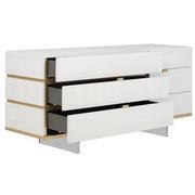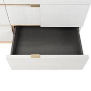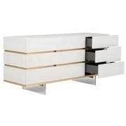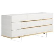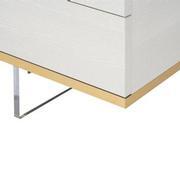 clean lines, brushed metal accents, tapered acrylic legs, and a finish that blends contemporary styling with practicality. Matt finished with Brushed Gold accents.