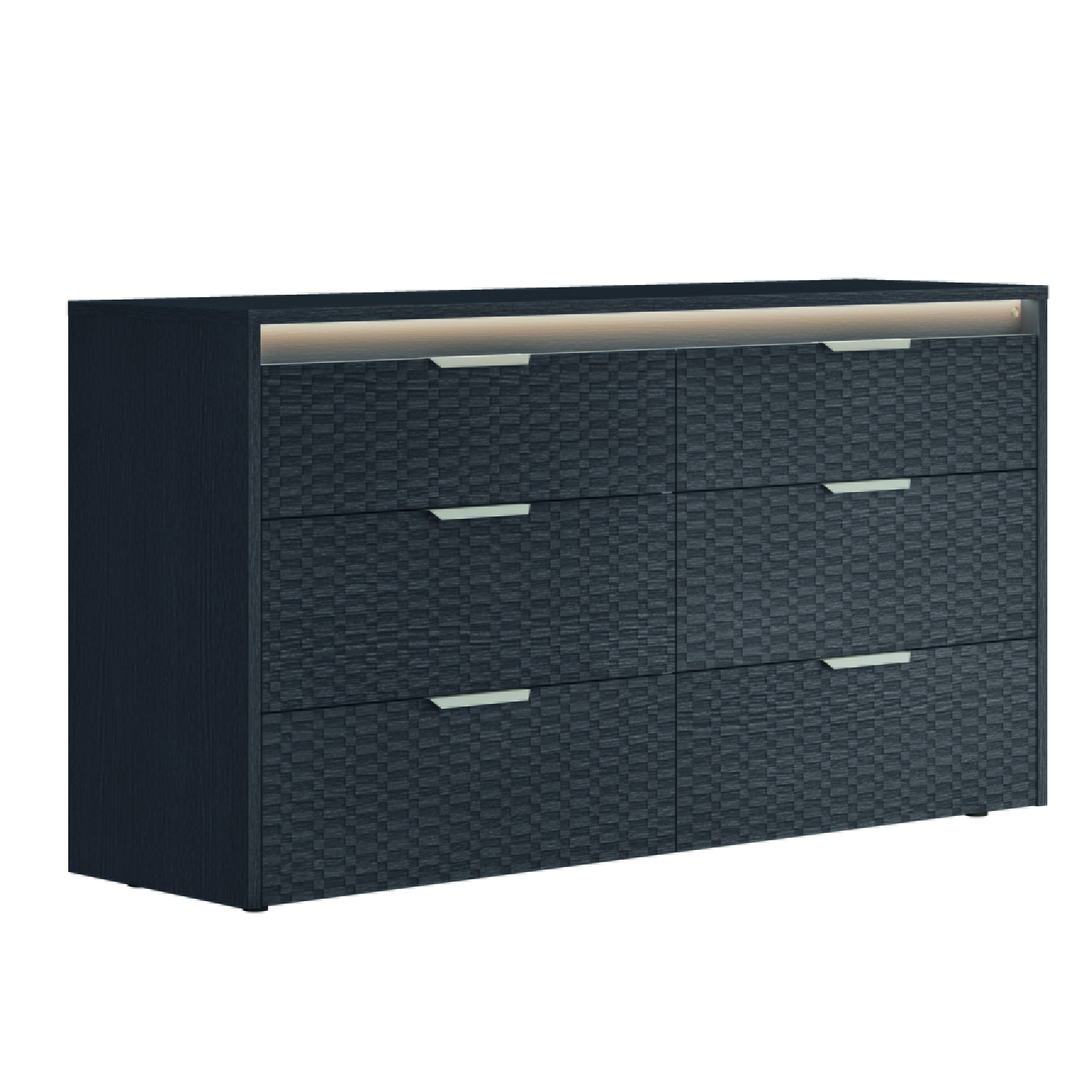 The Amy Dresser balances everyday function with a calm, contemporary aesthetic. Finished in Matte Eco Dark Oak and available with Tetris-textured drawer fronts, it delivers the tactile character of Italian design—elegant, grounded, and distinctly matte. An optional lighting kit adds ambient illumination along the front to showcase the texture.