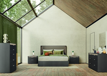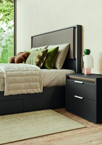 Bring calm, modern geometry to the bedroom with the Amy Bed by ALF Italia. A softly eco-leather upholstered headboard with integrated LED lighting creates a warm, ambient glow, while the frame’s Matte Eco Dark Oak finish grounds the room in a rich, tactile look—no shine, just elevated Italian minimalism.