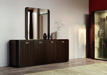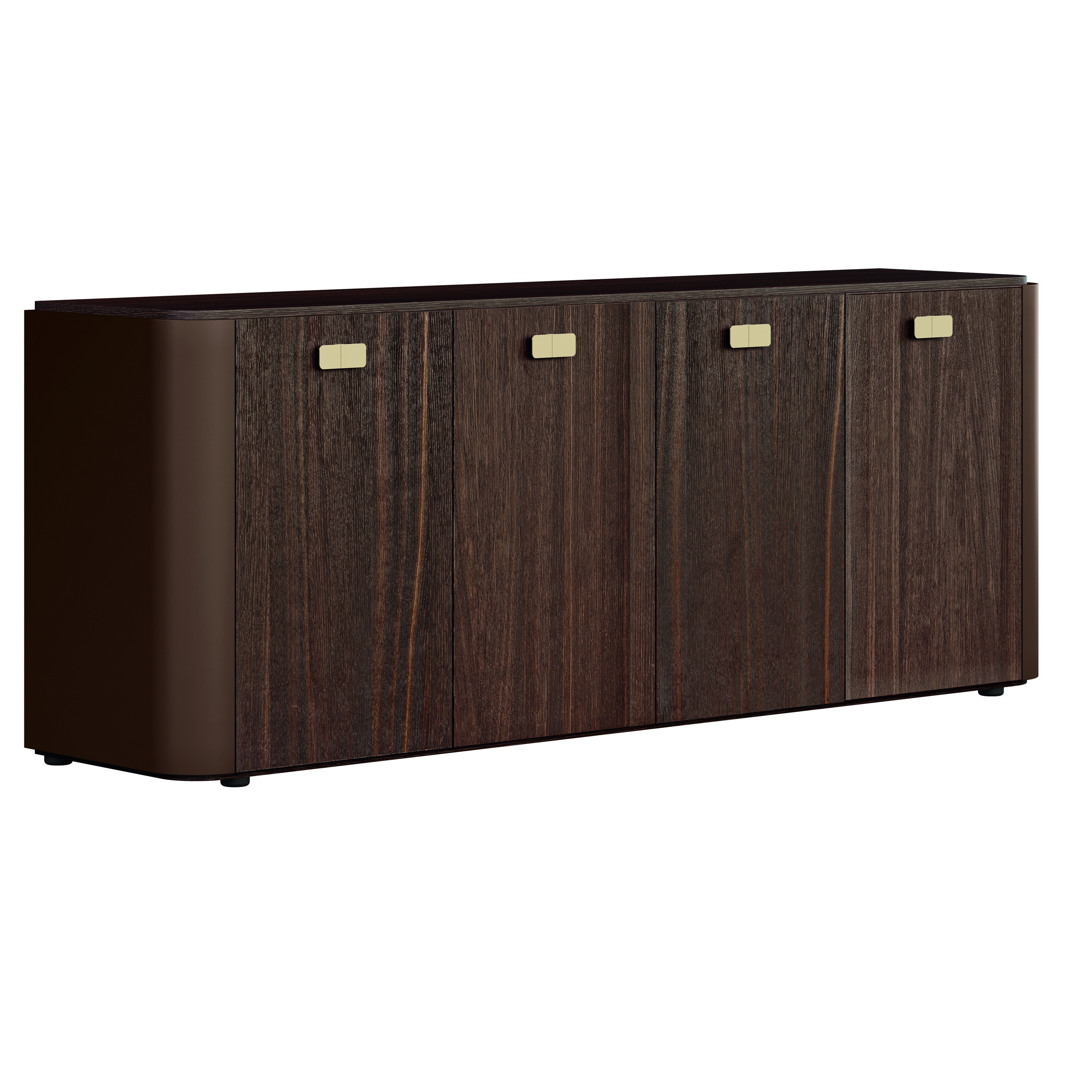 • Materials & Finishes: Common finishes include Matte Espresso combined with Termocotto Oak wood veneer, enriched by refined bronze-tone hardware and softly rounded edges.