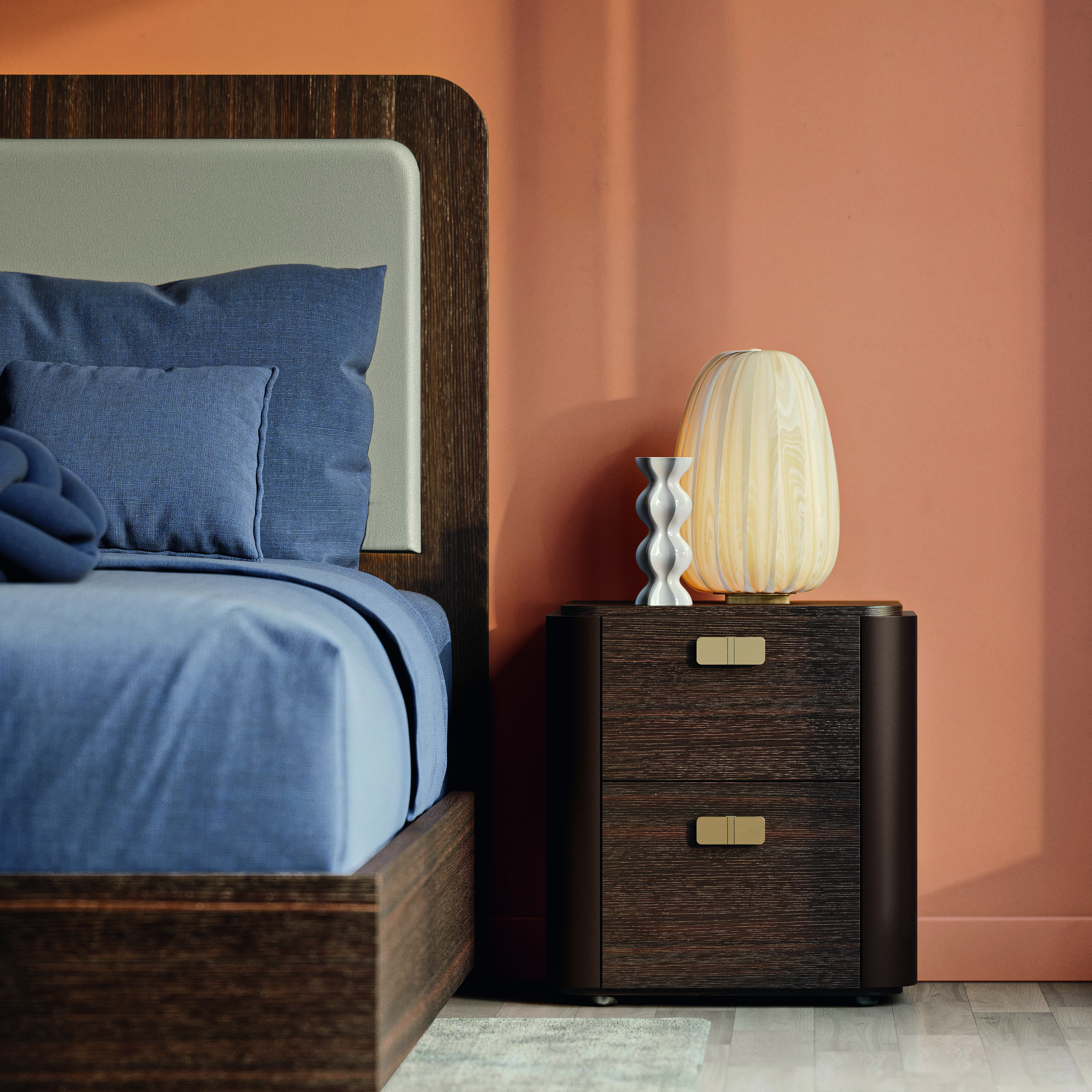 • Materials & Finishes: Common finishes include Matte Espresso combined with Termocotto Oak wood veneer, enriched by refined bronze-tone hardware and softly rounded edges.