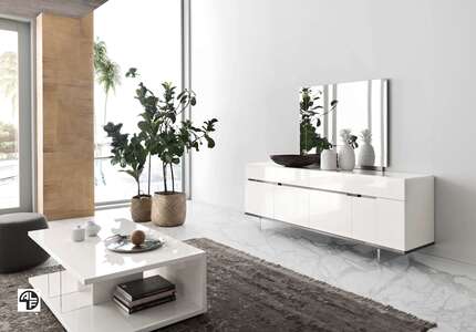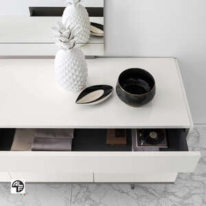 The Artemide Collection from Alf Italia is a modern, high-gloss Italian furniture series characterized by white lacquer finishes, sleek metal accents, and clear methacrylate (acrylic) feet that give pieces a light, floating aesthetic. It’s designed to furnish multiple spaces — from bedrooms and dining rooms to living/entertainment areas — with a cohesive, elegant style.
