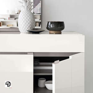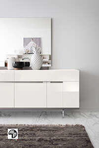The Artemide Collection from Alf Italia is a modern, high-gloss Italian furniture series characterized by white lacquer finishes, sleek metal accents, and clear methacrylate (acrylic) feet that give pieces a light, floating aesthetic. It’s designed to furnish multiple spaces — from bedrooms and dining rooms to living/entertainment areas — with a cohesive, elegant style.