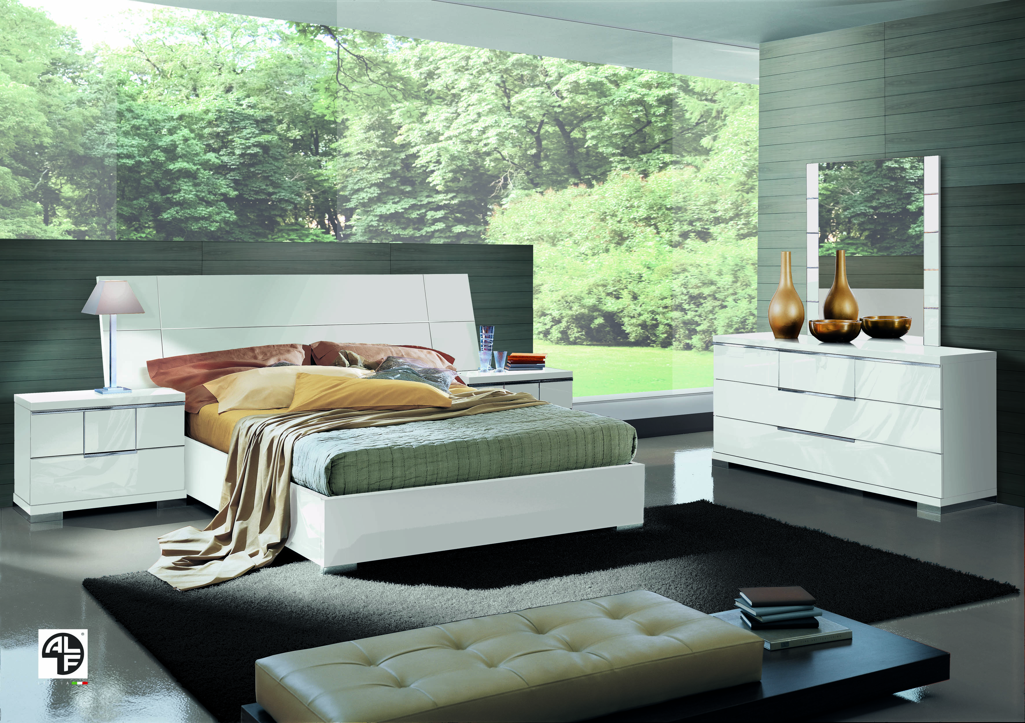 The modern Asti platform bed features an inclined headboard and high gloss white finish. This beautiful collection has a smooth glossy style with crisp and neat lines.