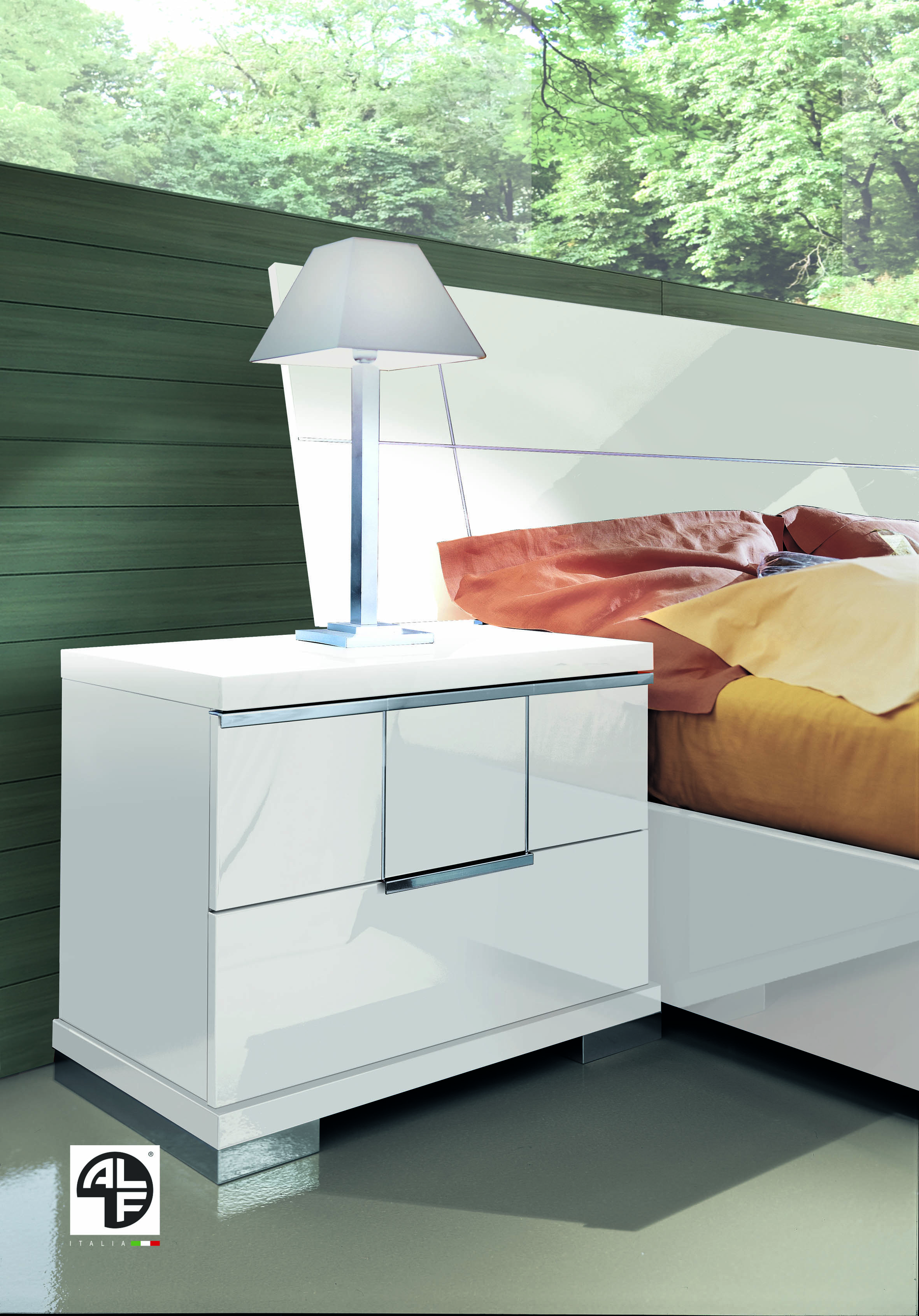The Asti Nightstand features a White High Gloss finish and stunning Chrome accents which makes it truly gorgeous and emphasizes luxury design.