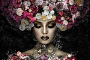 Immerse yourself in a world of creativity and elegance with this 40 × 60 inch tempered glass artwork featuring a woman partially submerged in water, with a lush floral bouquet emerging from her head and chest. This surreal and captivating composition symbolizes growth, inner beauty, and the harmonious connection between human form and nature.