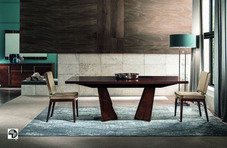 The Bellagio Dining room collections is a graceful and striking design. The collection is crafted from beautiful Italian walnut, which has been finished in a deep warm coffee tone. The way the wood grain shows in this collection is truly remarkable and beautiful. Each piece is adorned with accents in satin rose gold.