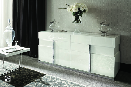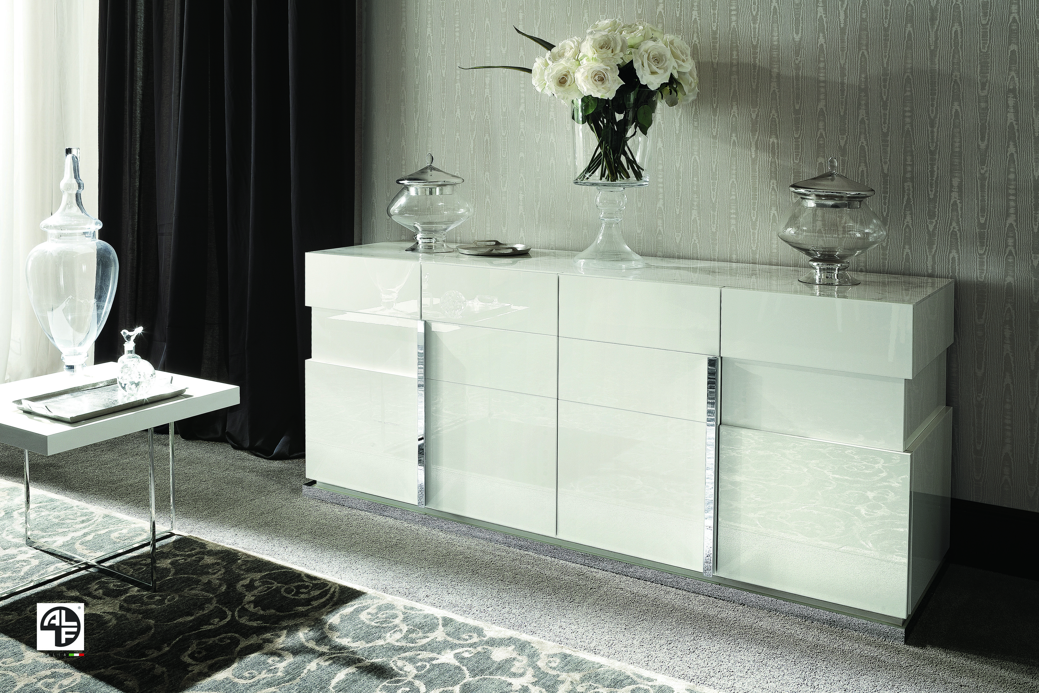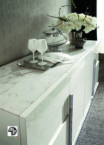 The ALf Canova Collection is the essence of Italian glamour. This1 Buffet Sideboard features a signature Carrara Marble top. The Buffet is created in a beautiful glossy white lacquer which is accented with chrome handles and accents. Create stylish storage in your home with this Buffet, the perfect synergy of style and functionality. Made in Italy.