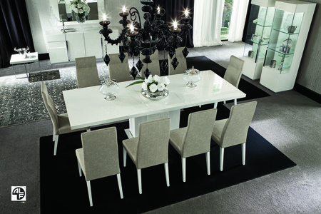 This stunning dining table makes the perfect addition to any modern dining space. The ALF Canova Dining Table is finished in a striking high-gloss lacquer, while Carrara marble runs down its base, finishing with a mirrored trim. Inviting guests? This table is extendable, making it the perfect solution for practicality and modern style. Made in Italy.