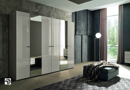 For the sophisticated modern bedroom, the Alf Italia Claire King Size High Gloss Bed with Lights is incredibly stylish. This Italian design features smart proportions to suit a modern bedroom scheme. A classy take on neutrals, the pearl color of this bed frame balances a dark toned room, especially when styled alongside other pieces in the Claire range, creating a sleek Italian bedroom set. BUILT-IN HEADBOARD LIGHTS Like other ranges by Alf furniture, this bed frame is made from a veneer base and headboard. This is then applied with layer upon layer of lacquer to give an ultra-high gloss finish that oozes luxury. For comfort, this Italian bed features a neutrally upholstered headboard section detailed with vertical paneling. Built-in backlighting draws attention while creating a warm and intimate glow. High Gloss Pearl Finish Backlit, Upholstered Headboard Made in Italy.