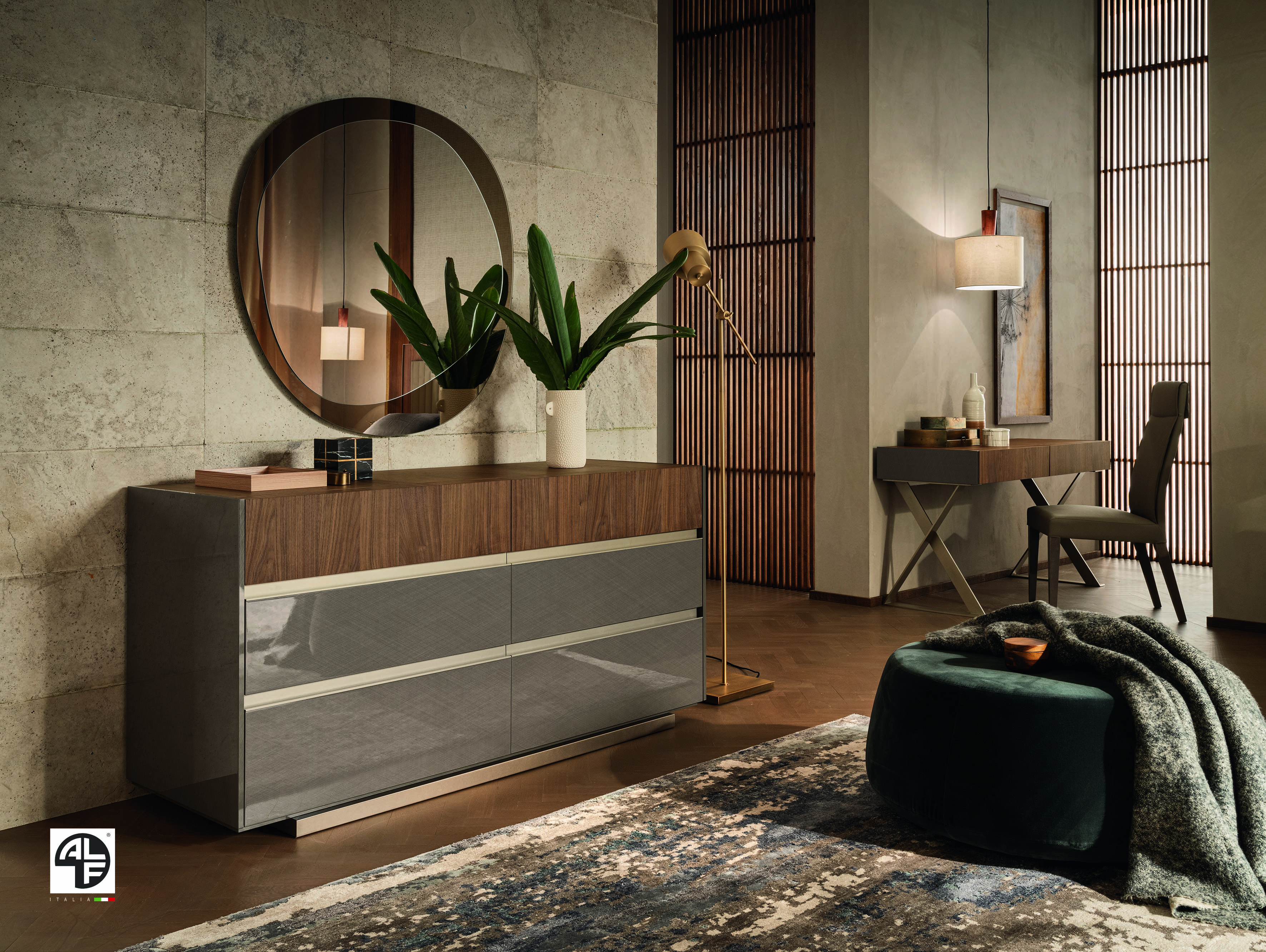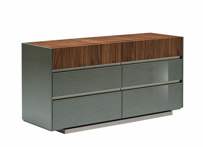 The Corso Como Dresser is designed with a combination of walnut gloss lacquered and matt wooden finishes. This Dresser features 5 soft-closing drawers. The bed is supplied with slats. The case goods include nightstands, dresser, mirror, chest, and a gorgeous vanity table. Premium materials are combined to create amazing colors. The brilliant, shiny surface is covered with scratch-resistant wood veneers. Made in Italy.