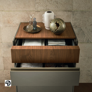 The Corso Como Chest is designed with a combination of walnut gloss lacquered and matt wooden finishes. This modern bed features headboard lighting. Premium materials are combined to create amazing colors. The brilliant, shiny surface is covered with scratch-resistant wood veneers.