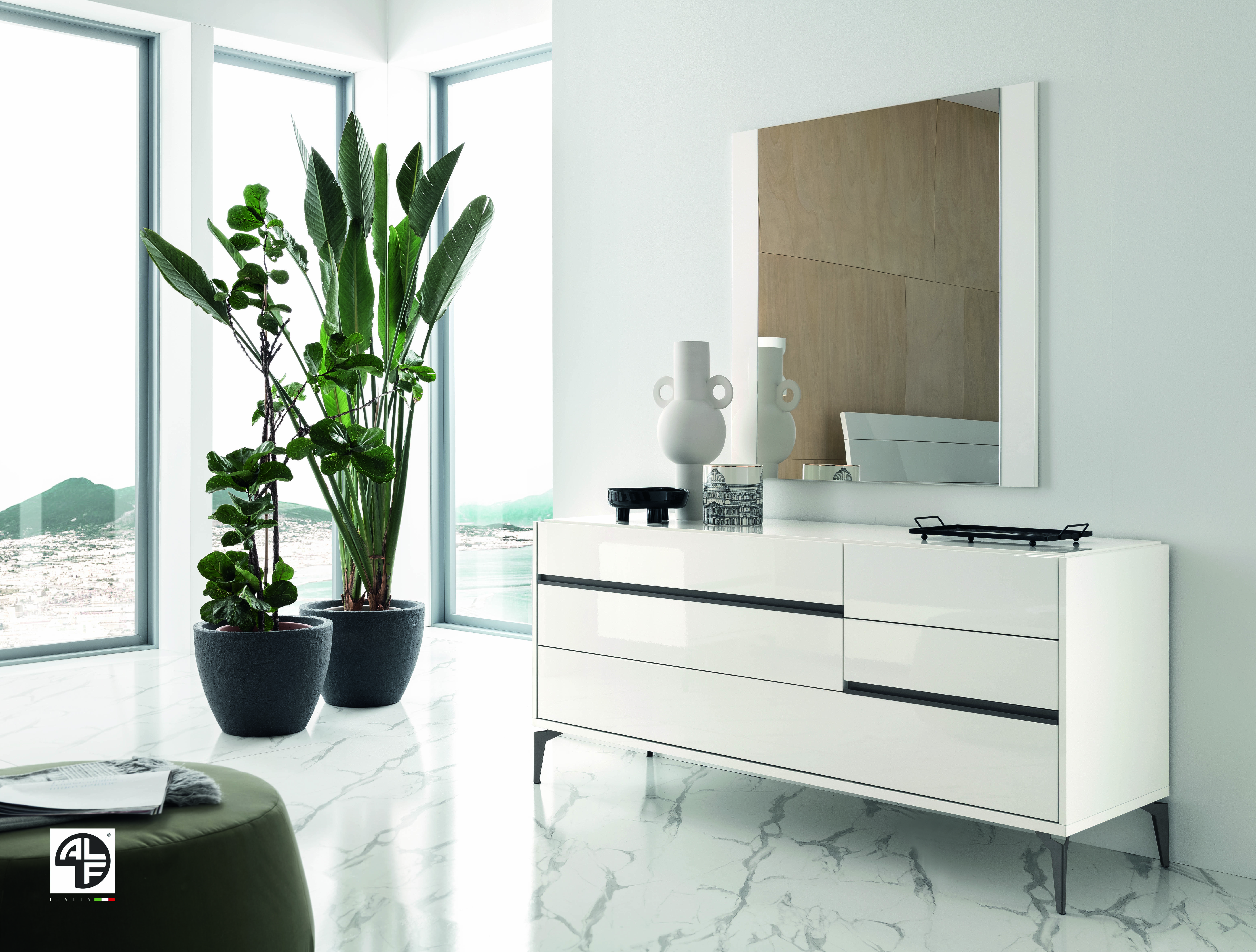 The Costa Blanca Bedroom Collection features a glossy white lacquer. its details consist of light wood veneer and metal elements in metallic gray. the case goods consist of matching nightstands, dressers, mirrors, chests, and wardrobes. The Costa Blanca collection would complement every room of your home. Its design and versatility are sure to delight.