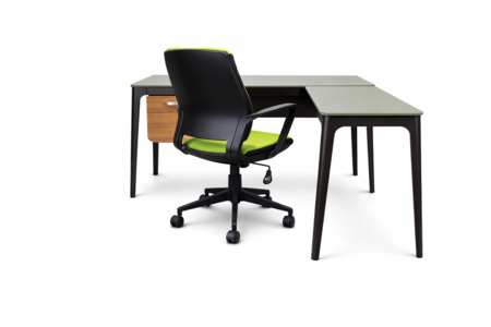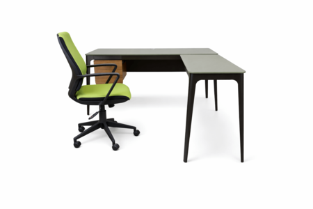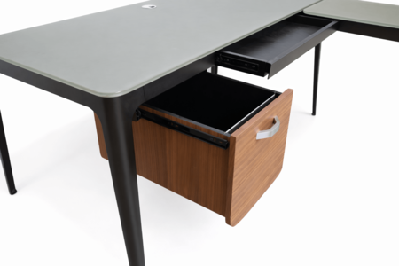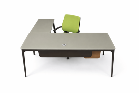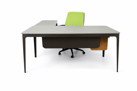 This modern desk features a sleek, minimalist design that blends style and functionality. The spacious tabletop provides ample room for work, while the integrated return creates an extended surface ideal for multitasking or organizing essentials.
