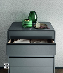 The Graphite Bedroom Collection features a graphite lacquer. its details consist of light wood veneer and metal elements in metallic gray. the case goods consist of matching nightstands, dressers, mirrors, chests, and wardrobes. The graphite collection would complement every room of your home. Its design and versatility are sure to delight. Dimensions: W 32″ x D 19″ x H 53″ Finish: Graphite Lacquer. Material: Wood & Metal