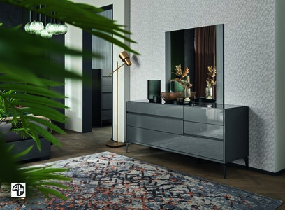 The Graphite Bedroom Collection features a graphite lacquer. its details consist of light wood veneer and metal elements in metallic gray. the case goods consist of matching nightstands, dressers, mirrors, chests, and wardrobes. The graphite collection would complement every room of your home. Its design and versatility are sure to delight.