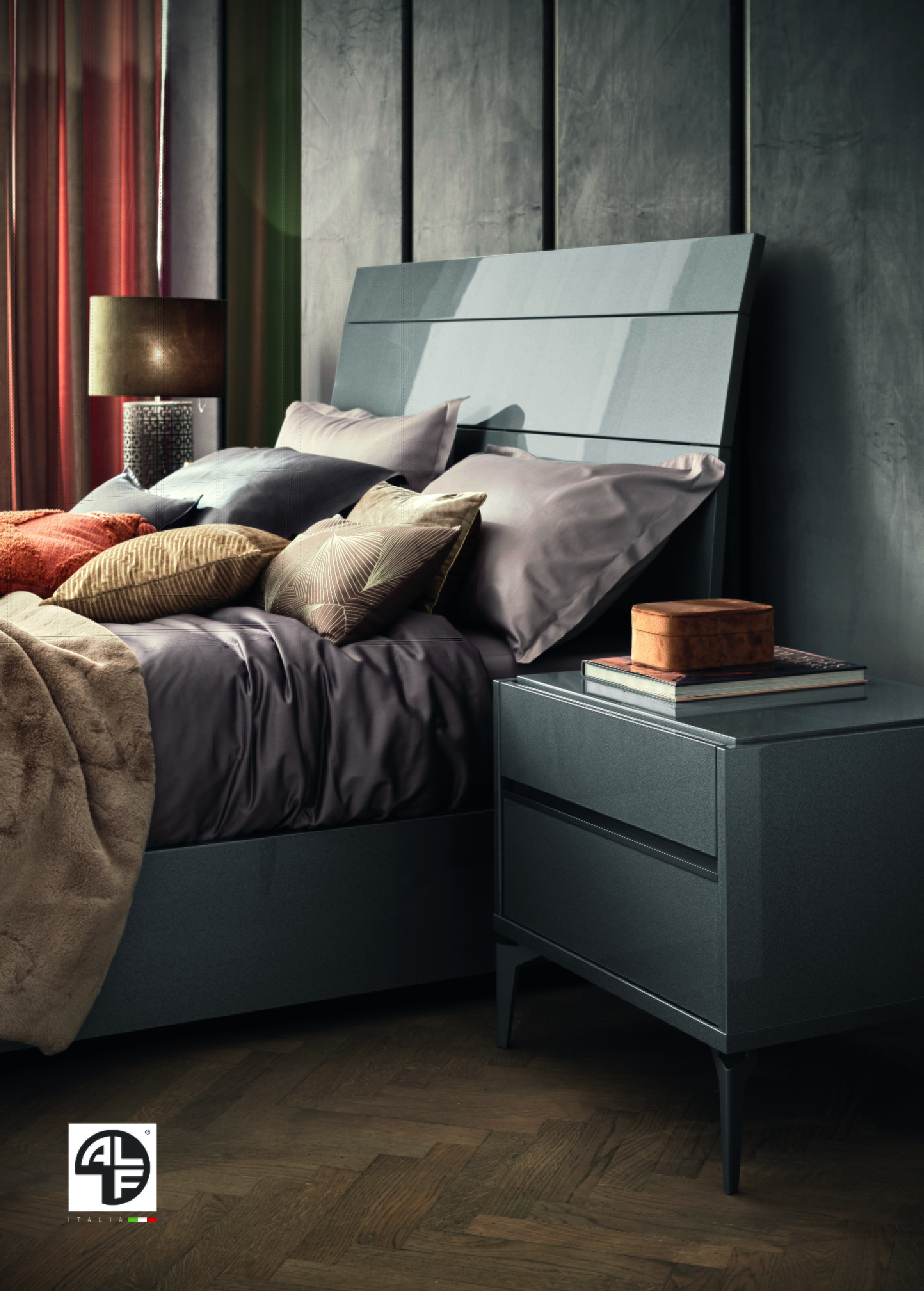The Graphite Bedroom Collection features a graphite lacquer. its details consist of light wood veneer and metal elements in metallic gray. the case goods consist of matching nightstands, dressers, mirrors, chests, and wardrobes. The graphite collection would complement every room of your home. Its design and versatility are sure to delight. W