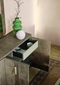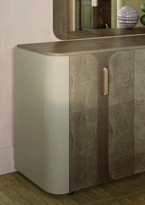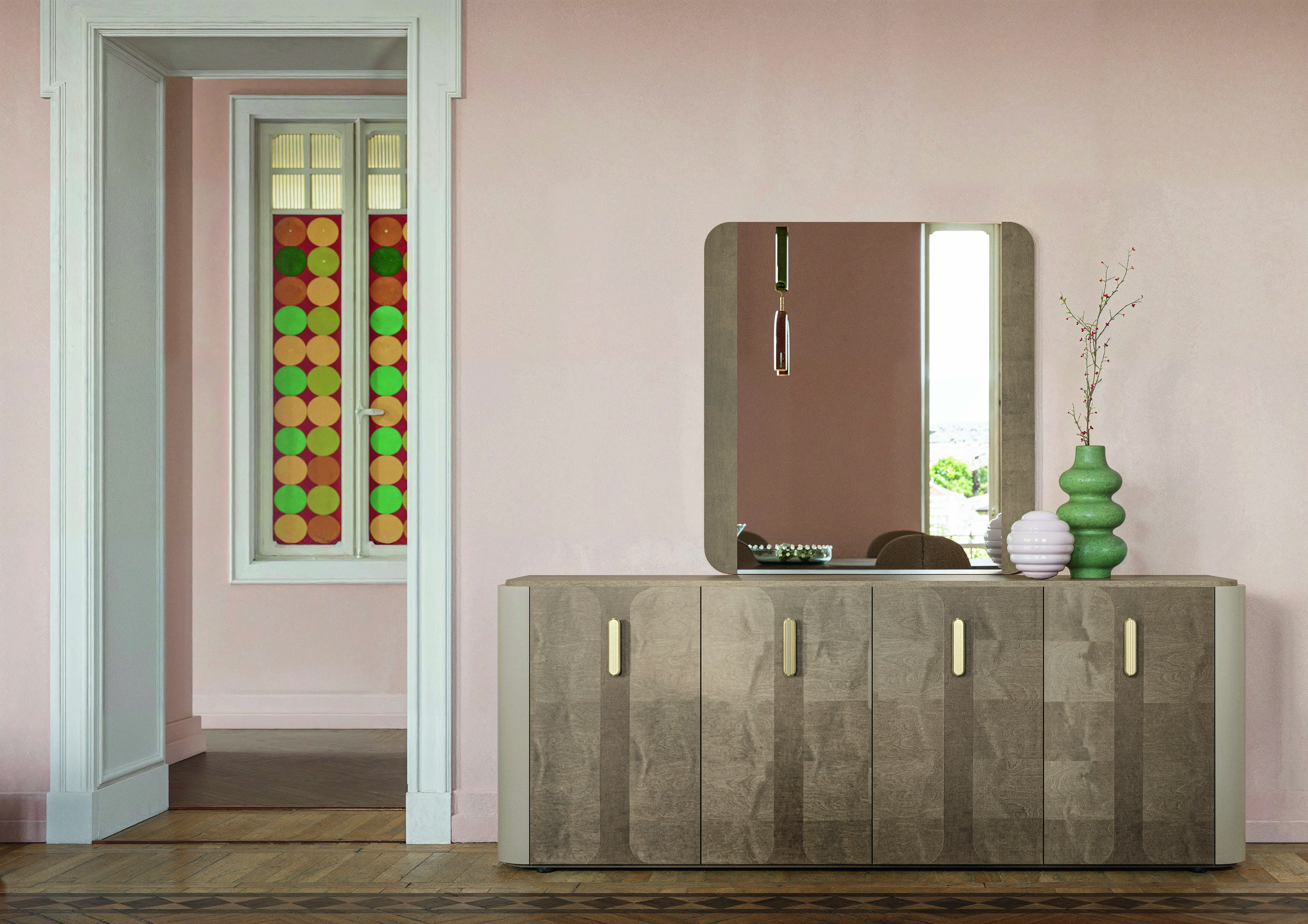The Alf Hebe Buffet, crafted in Italy, showcases exquisite craftsmanship with its stunning saddle birch inlay. This elegant piece combines modern design with functionality, offering ample storage space for dining essentials.