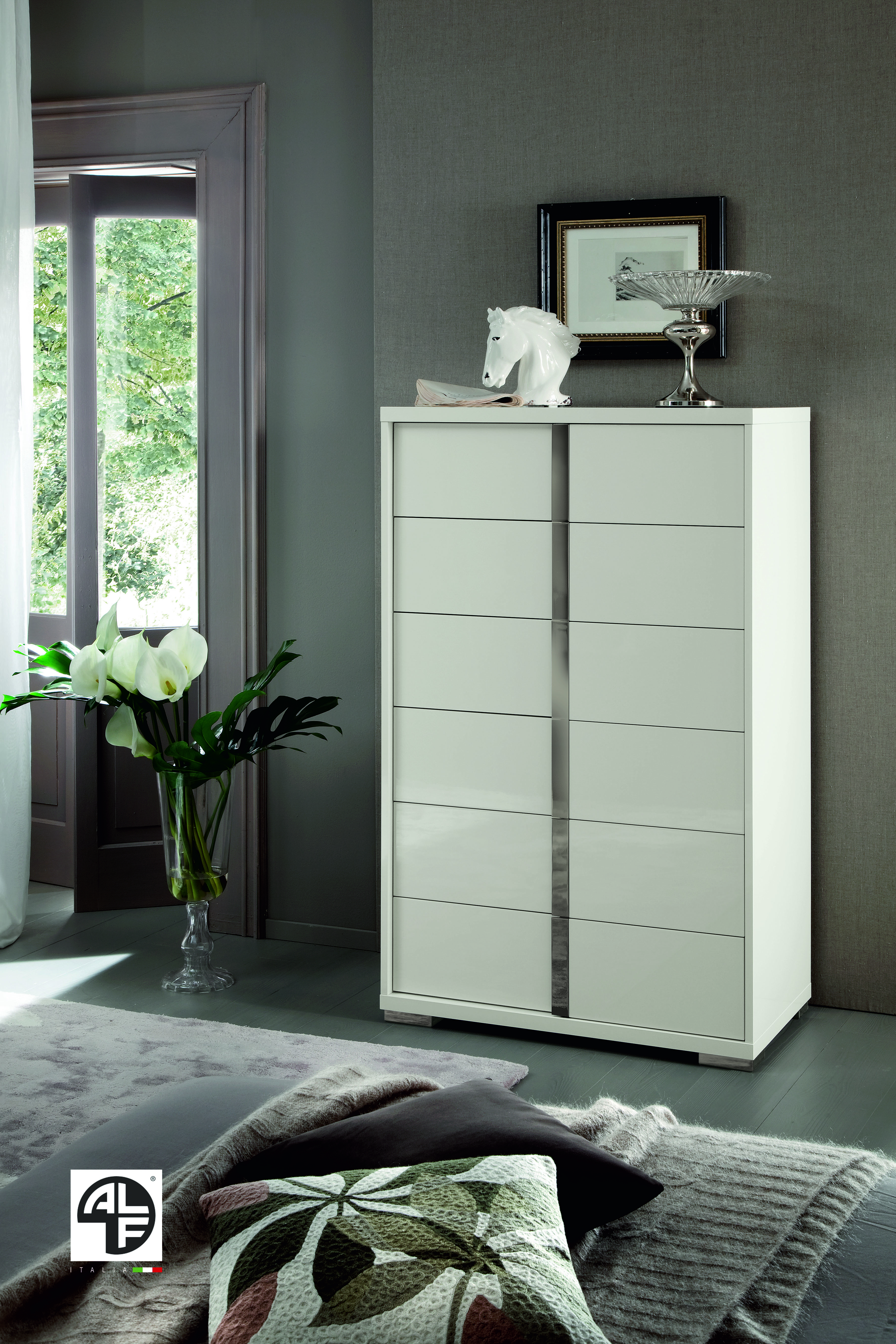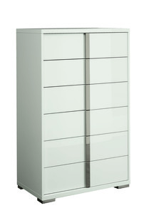 The Imperia Chest is very angelic and emphasizes modern design with bold aspects. This chest features an elegant White High-Gloss finish, Chrome accents.