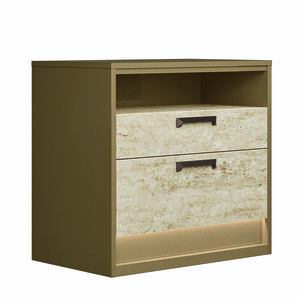 Finish / Materials: Gold High Gloss & Travertino Eco Stone, using MDF/Wood Veneer construction.