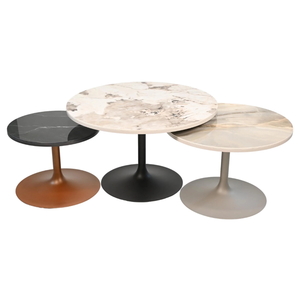 This contemporary coffee table combines timeless elegance with a versatile design, making it a sophisticated addition to any living space. Featuring a goblet-shaped base crafted from the highest quality metal, these nesting tables exude strength and style. The base is available in three elegant finishes: Anthracite, Silver, and Copper, allowing you to customize the table to suit your aesthetic preferences.