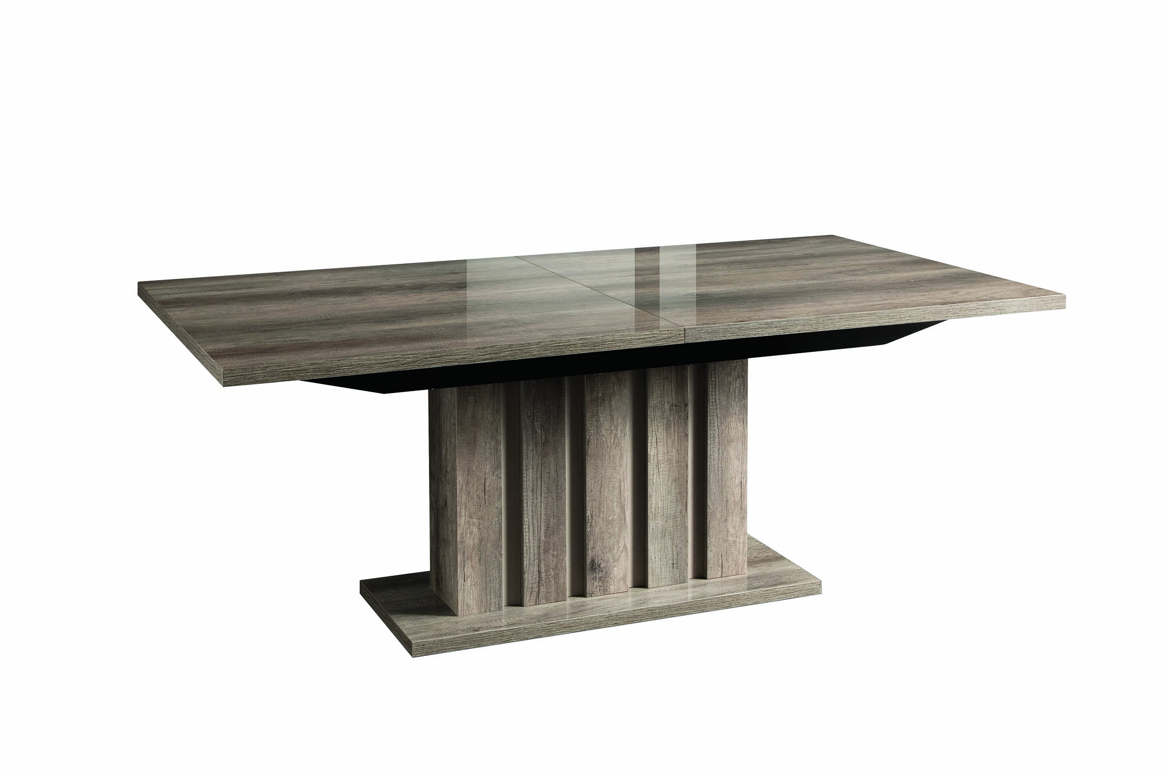 - Finish: “Rim Surfaced Oak / Grain Surfaced” — the table combines a wood veneer with textured (grain surfaced) finish elements. Gloss / lacquer accents appear in some models.
