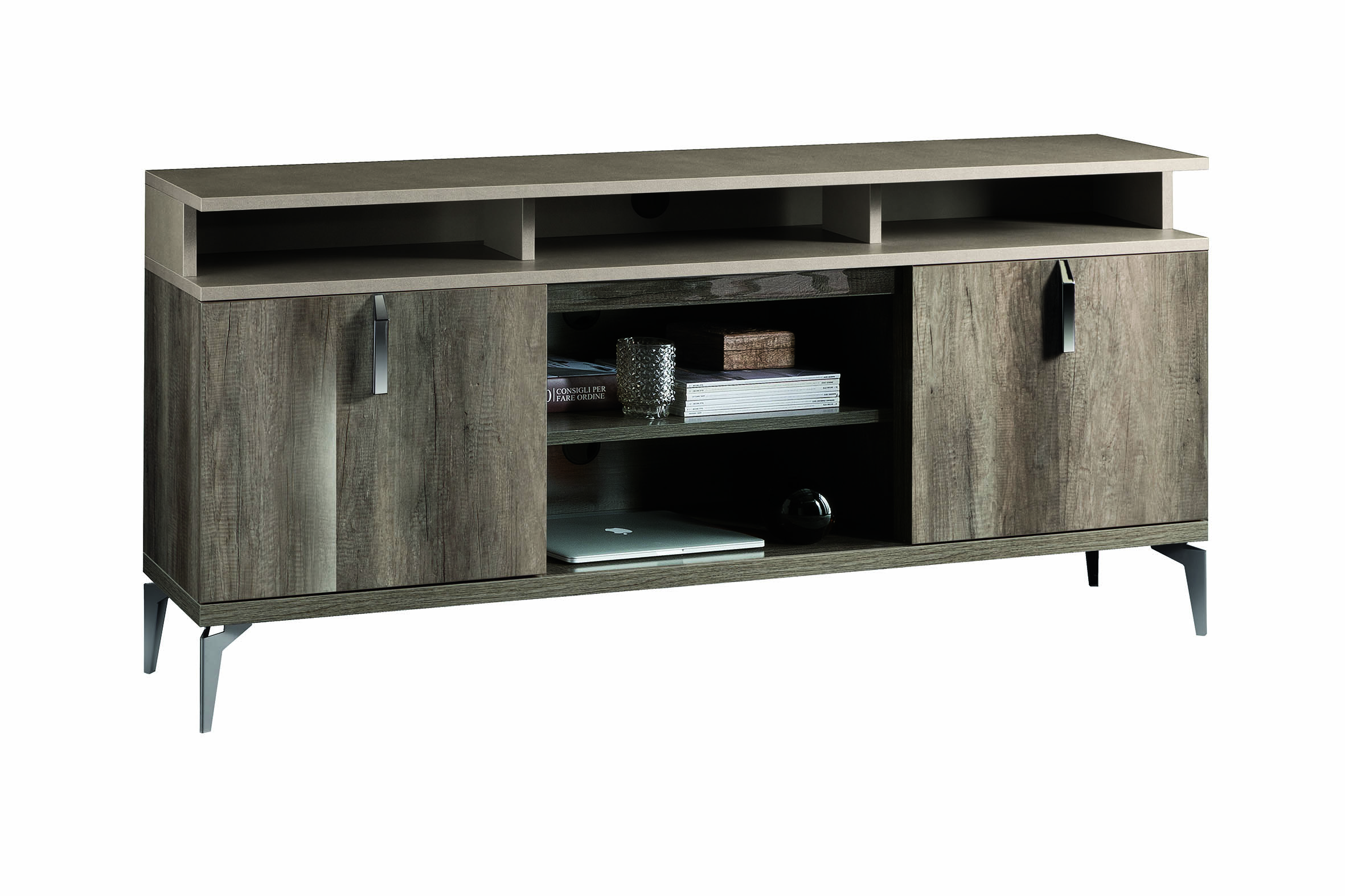 This gorgeous Italian dining collection would be a great addition to your dining room. Its stunning design and combination of gloss lacquer surface with grain surfaced matching finish will evoke lots of compliments from your family and guests. TV Base for Fireplace.
