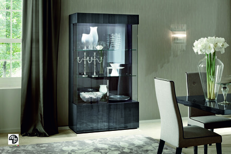 The Montecarlo Curio is a stylish display piece for your contemporary style home. It comes in beautiful Koto veneers in high gloss finish. It features two glass doors with glass shelves behind.
