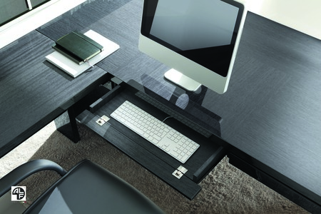 This desk is part of the ALF Italia “Montecarlo” home office collection, which includes desks, storage units, bookcases, etc. The collection is defined by a Kotò high-gloss veneer finish and chrome metal profiles.