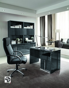 This desk is part of the ALF Italia “Montecarlo” home office collection, which includes desks, storage units, bookcases, etc. The collection is defined by a Kotò high-gloss veneer finish and chrome metal profiles.