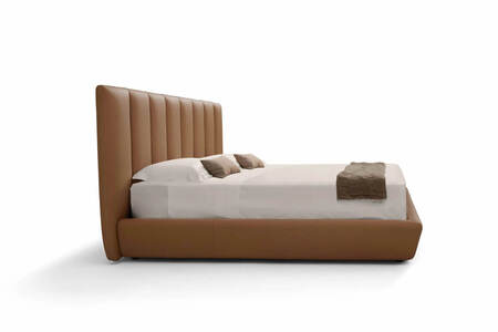 Its minimalist shape and well-proportioned forms create a pleasantly harmonious effect, while the upholstered headboard’s symmetrical vertical lines give it a touch of elegance and sophistication. This bed fits perfectly with any type of furnishing, modern or classic, thanks to its simple, versatile lines.
