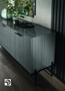 The Novecento collection by Alf Italia is characterized by its sophisticated contemporary Italian design, meticulous attention to detail, and Silverwood high-gloss finish that creates luminous, silvery reflections across the furniture surfaces. It blends wood, metal accents, and padded eco-leather elements for a distinctive upscale aesthetic.