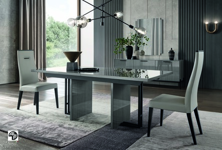 The Novecento collection by Alf Italia is characterized by its sophisticated contemporary Italian design, meticulous attention to detail, and Silverwood high-gloss finish that creates luminous, silvery reflections across the furniture surfaces. It blends wood, metal accents, and padded eco-leather elements for a distinctive upscale aesthetic.