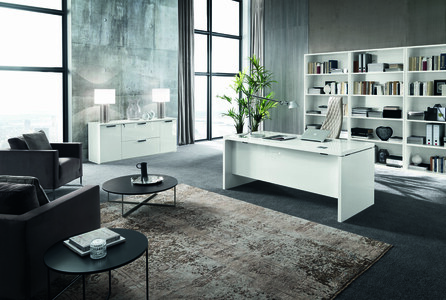 • Finish: White high-gloss lacquer that brightens and modernizes office spaces.
