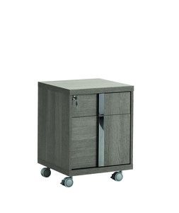 • Finish: Matte Grey Oak eco veneer with minimalist chrome handles — warm wood tones with a contemporary linear aesthetic.