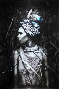 Celebrate beauty, heritage, and strength with this exquisite 40 × 60 in tempered glass artwork featuring a captivating portrait of a native woman. Enhanced with luxurious foil accents and hand-applied rhinestones, the artwork radiates depth, texture, and refined brilliance, creating a truly striking visual statement.